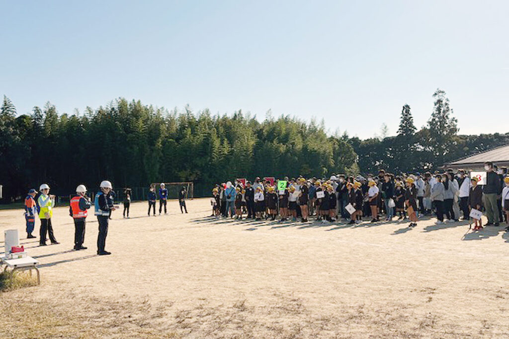 今年度の地区防災訓練は地域住民だけでなく高泊小学校の参観日にあわせて実施され、児童・保護者・教職員も参加しました。受付や防災グッズの配布は4年生が行い、参加するだけでなく運営にも携わってくれました。