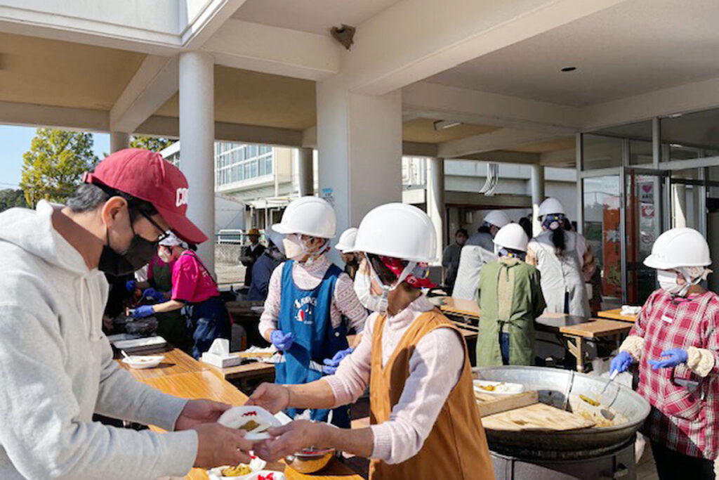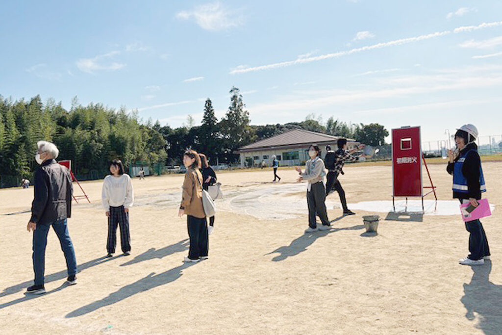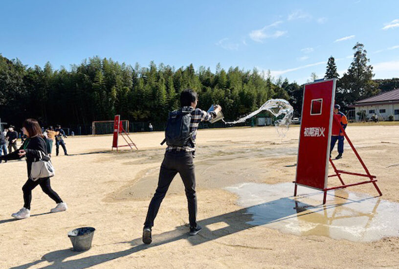 11月16日、高泊小学校グラウンドで高泊地区防災訓練が行われました。シェイクアウト(身をかがめて頭を守る動作)の後、3つのグループに分かれて、消火訓練・煙体験・バケツリレーを行いました。終了後は女性会による炊き出しのカレーをみんなで美味しくいただきました。