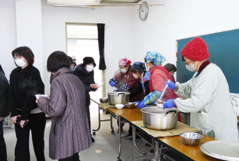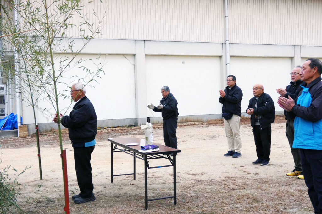 1月10日、どんど焼きを計画していましたが、林野火災警報発令のため中止となりました。前日、ふるまいのぜんざいの仕込みをしたり、竹を切って櫓を組んだりとみんなで準備をしていたのですが、当日も林野火災警報発令が解除されなかったため中止となりました。