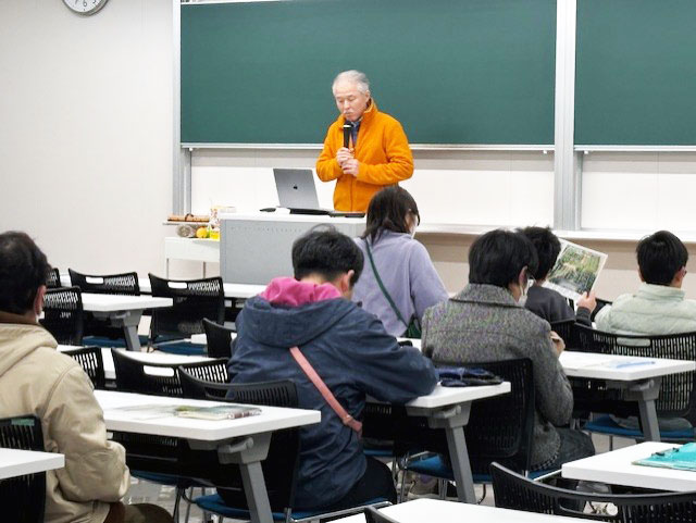 1月24日に勤労体験塾「高泊スコーレ」3回目の活動を行いました。今回はオブザーバーである島本 顕副学長のご協力により、山口東京理科大学でハーブについての学習会と大学内の薬草園の見学を行いました。