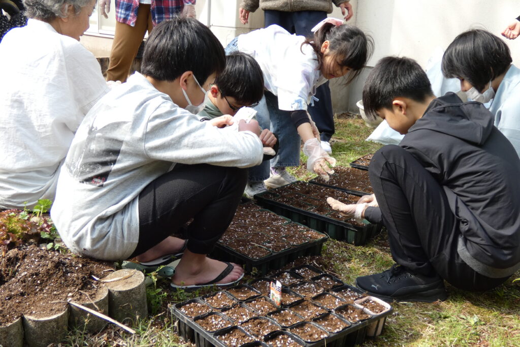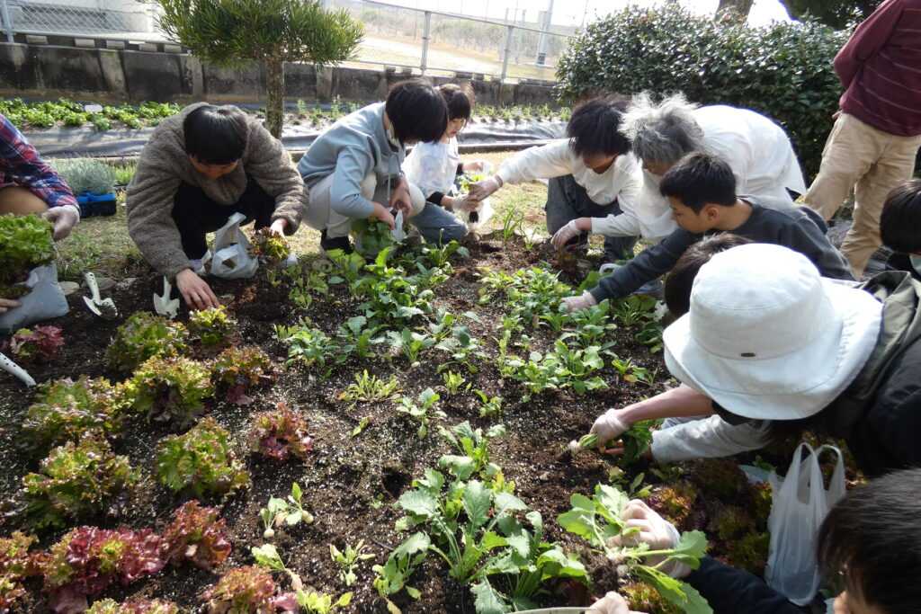 3月28日に勤労体験塾「高泊スコーレ」5回目の活動を行いました。今回は冬に整備した畑に春夏に向けたハーブの苗を植えたり、夏野菜の種をポットに蒔いたり、冬に植えたレタスと子カブの収穫を行ったりしました。植えたハーブは「コモンセージ」「オレガノ」「レモングラス」「ヒソップ」「レモンタイム」「ローズマリー」「コモンタイム」「レモンバーム」「ラベンダー」です。これから暖かくなるので成長が楽しみです。